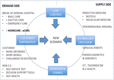 - Impatto sulle organizzazioni sanitarie in termini di nuovi modelli assistenziali intra ed extra ospedalieri per garantire continuità assistenziale, spostamento di una quota rilevante delle attività dall'ospedale al territorio, team medico-infermeristici-assistenziali che ruotano intorno al paziente, informazioni cliniche e nuovi servizi "information intensive" e orientamento alla self health